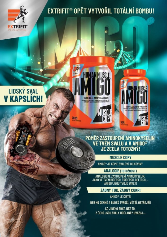 Extrifit Amigo je ideální parťák do gymu, postará se o růst svalů, lepší regeneraci, a zároveň zabrání rozpadu svalové tkáně. To se může stát každému – ať už hubnete, nebo jste si dali pořádně do těla. Chraňte své svaly a postarejte se jim o tu nejlepší výživu s přípravkem Extrifit Amigo.
