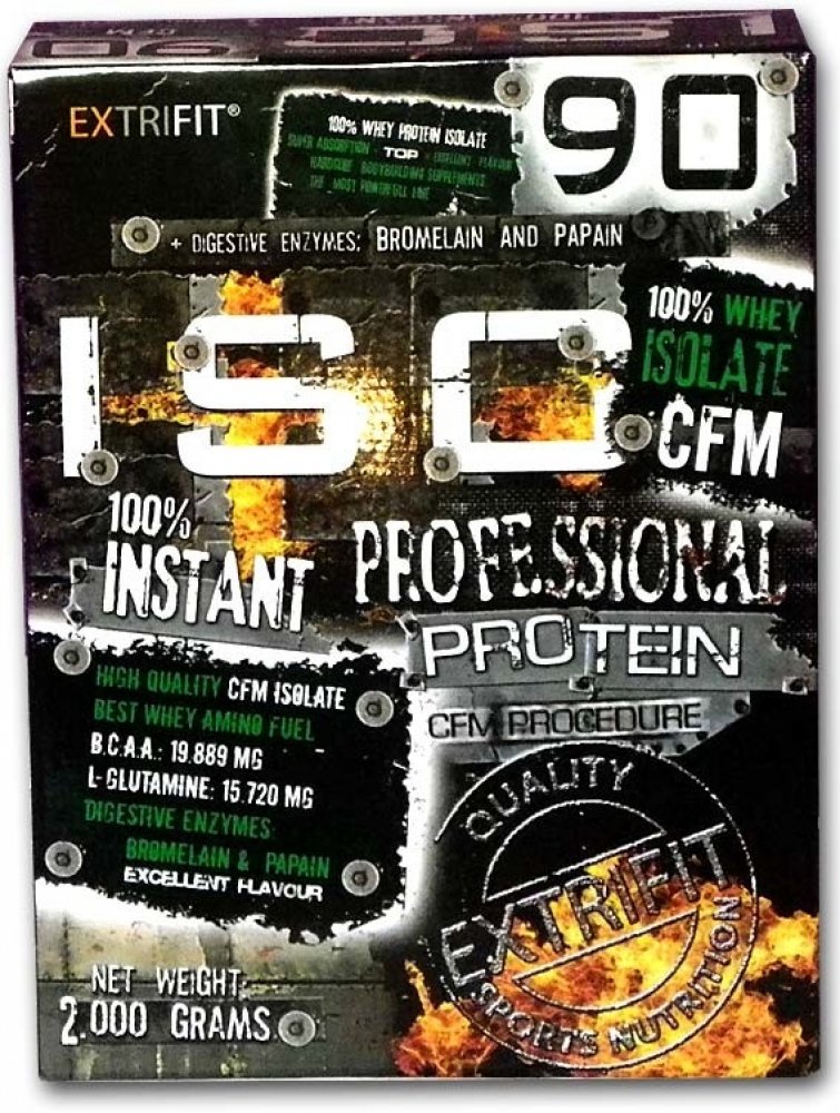 PROFESSIONAL WPI 90% CFM je vysokoproteinový doplněk výživy. Obsah bílkovin je 85,5% - 87,2% (liší se podle příchuti). WPI 90% CFM je výrobek s téměř nulovým obsahem tuku a minimálním obsahem sacharidů. Je určený pro nárůst čisté svalové hmoty bez tuku a ke zvýšení síly a vytrvalosti. Extrifit Iso 90 je dlouhodobě nejprodávanější 90 % protein na českém internetu. Základem je špičkový zdroj bílkovi...