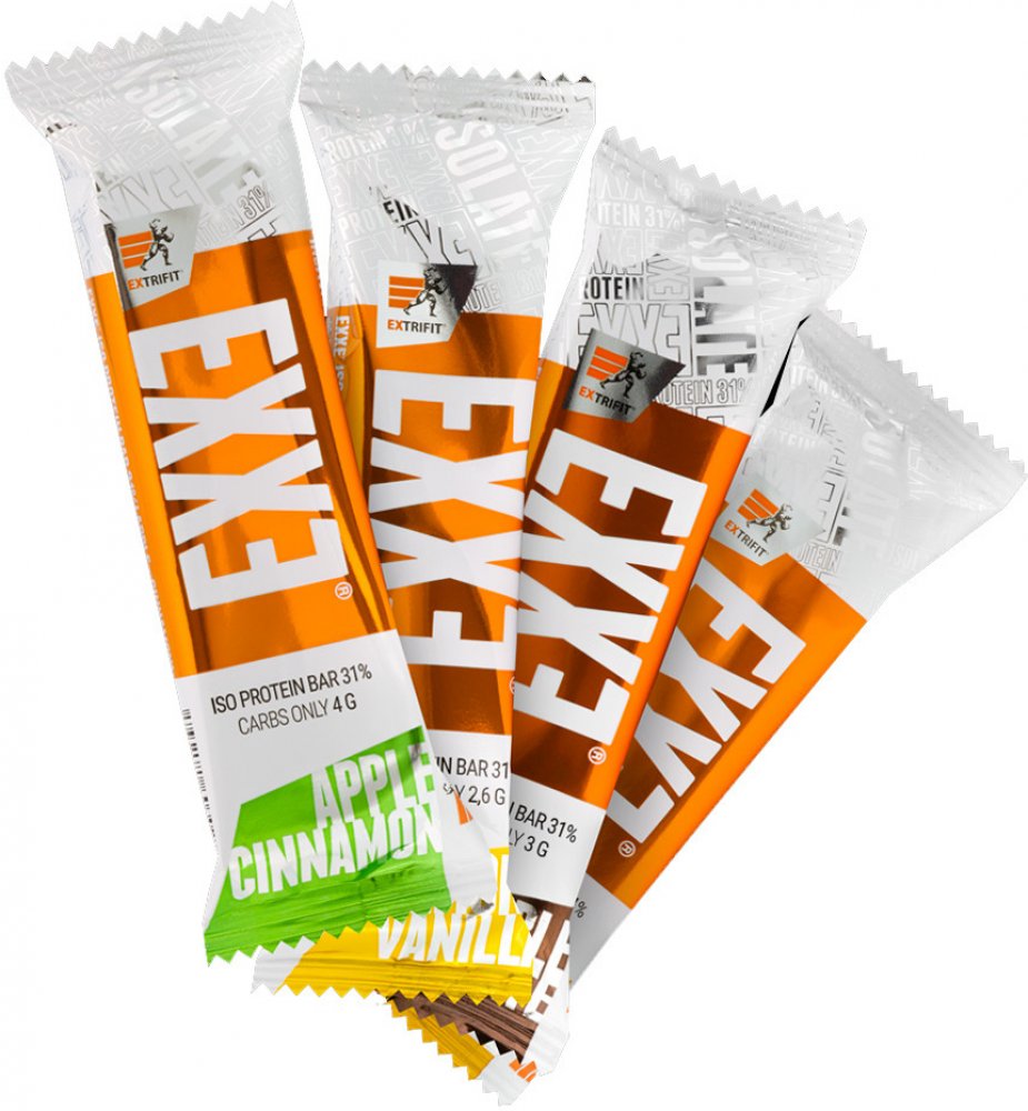 Proteinové tyčinky EXXE® jsou bez jakéhokoli přehánění vrcholem nabídky mezi všemi proteinovými tyčinkami. EXXE® obsahují až 20x méně cukrů než tyčinky jiných výrobců. EXXE® si opravdu zaslouží název PROTEINOVÉ tyčinky, protože jako téměř jediné na trhu obsahují skutečné a plnohodnotně využitelné proteiny - syrovátkový a mléčný 90% izolát a 80% syrovátkový koncentrát. Ano, přesně ty proteiny, které najdete v opravdových proteinových suplementech, jako je například High Whey 80!