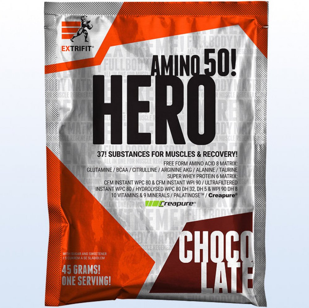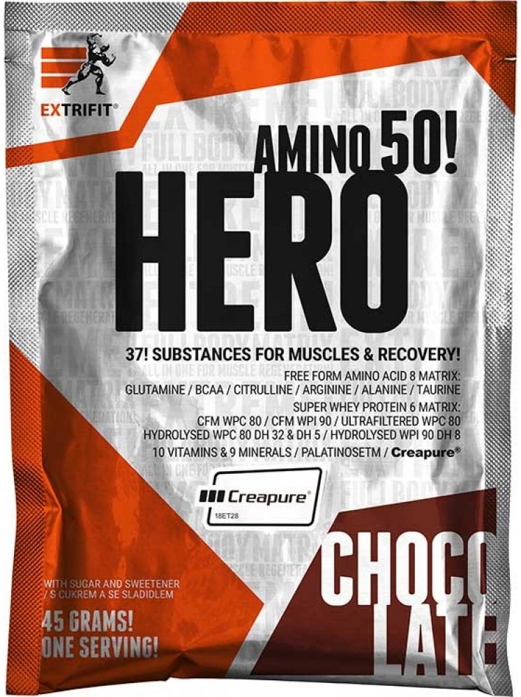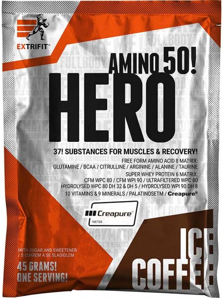Extrifit Vám nabízí Hero ve vícero výborných příchutích. Připravený nápoj má krémovou konzistenci a skvělou chuť.
