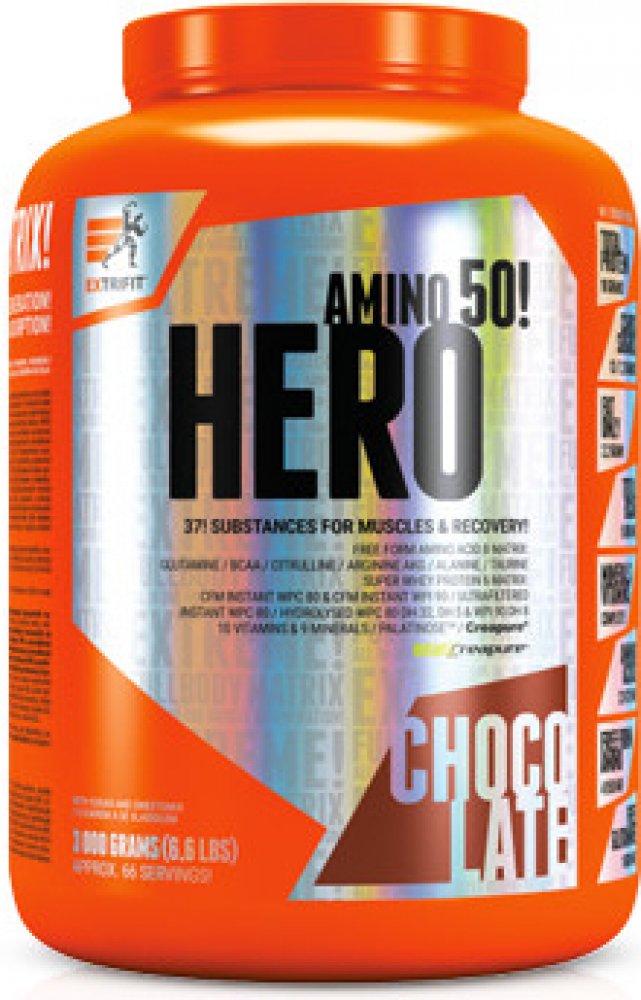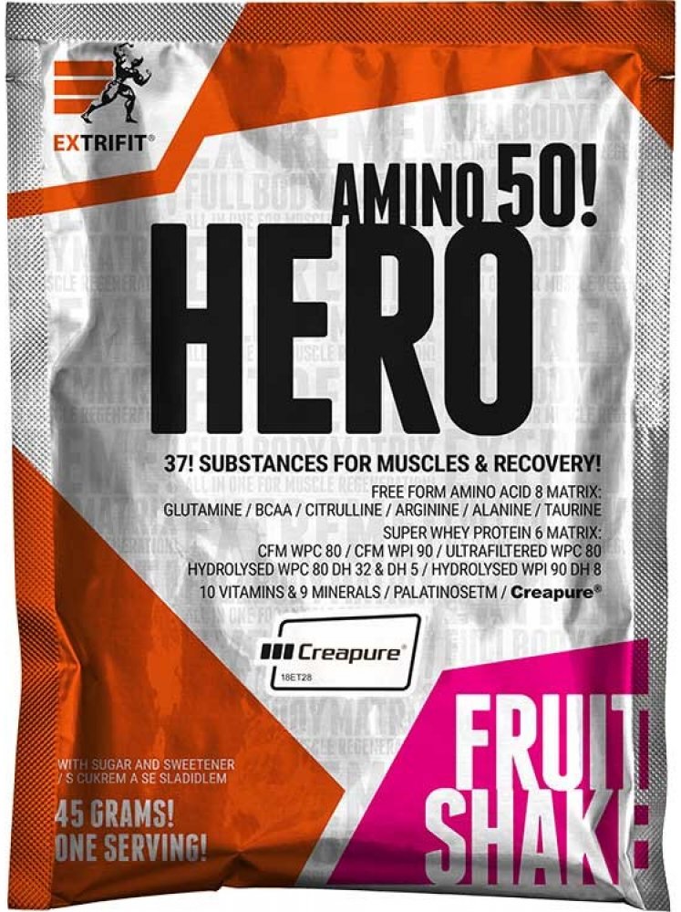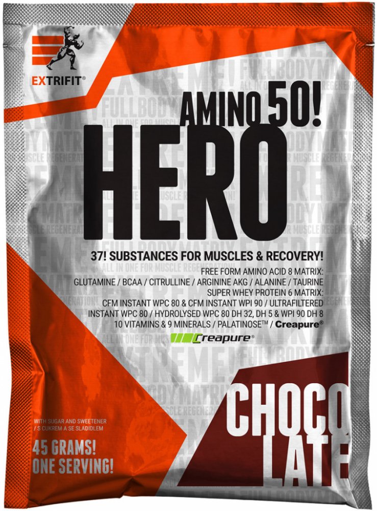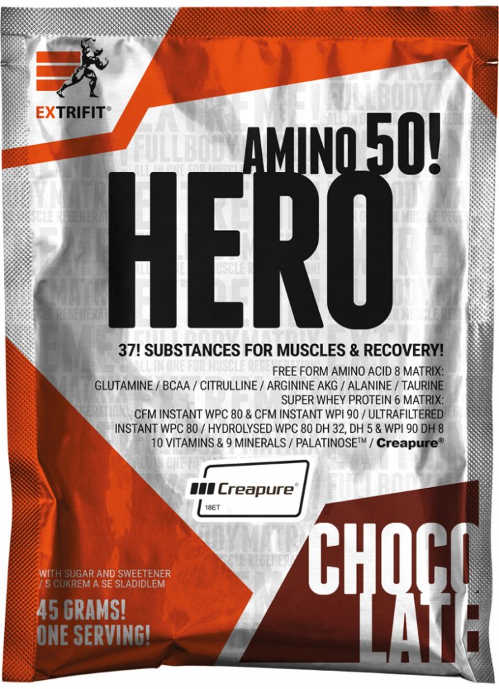 Díky obsahu proteinů přispívá Hero k růstu síly a svalové hmoty a k jejímu udržení v situacích, kdy je ohrožena katabolizací, jako je třeba velmi intenzivní či dlouhotrvající trénink. Hero je skvělou investicí! 37 všech účinných látek, nutných pro doplnění po tréninku, nenabízí žádný jiný produkt! Není třeba nakupovat jednotlivé potréninkové suplementy každý zvlášť!