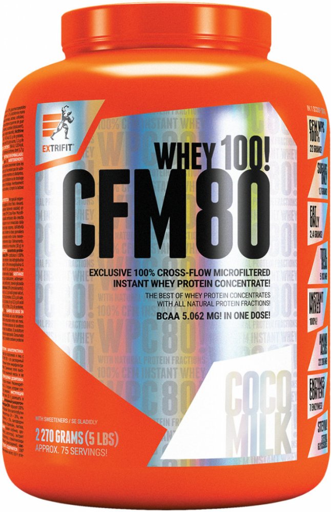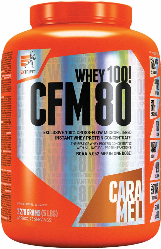 Obsah proteinů je 76,5 % - 78,7 % (liší se podle příchutě). PROFESSIONAL WPC 80 % CFM je díky obsahu bílkovin určen pro podporu růstu svalové hmoty. Je vyroben výhradně z nejkvalitnějšího instantního (snadno rozpustného) syrovátkového proteinu CFM (nejmodernější technologie výroby - cross flow microfiltrated), který je zárukou výborné využitelnosti. Svým antikatabolickým účinkem díky obsaženým bílkovinám pomáhá udržet svalovou hmotu i za situace nižšího energetického příjmu jako třeba při redukčních dietách. Obsahuje veškeré esenciální a neesenciální aminokyseliny s vysokým množstvím aminokyselin BCAA (L-leucin, L-valin, L-isoleucin). Dále je přidána vláknina. Významným podílem jsou přidány všechny důležité vitamíny. PROFESSIONAL WPC 80 % CFM je vhodný pro sportovce především silových a silově vytrvalostních sportů.