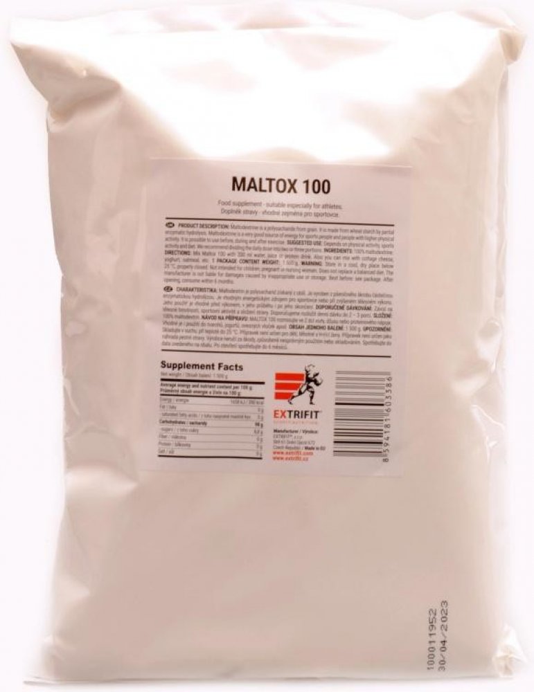 Maltodextrin je polysacharid získaný z obilí. Je vyroben z pšeničného škrobu částečnou enzymatickou hydrolýzou. Vzniká spojením pěti molekul glukózy – jednoduchého cukru sloužícího jako hlavní zdroj energie pro naše tělo. Výhodou tohoto spojení je možnost pozvolnějšího uvolňování glukózy jako zdroje energie. Maltodextrin se postupně štěpí v našem střevě na jednotlivé molekuly glukózy. Ty se pak plynule vstřebávají a zajišťují stabilní zvýšení hladiny krevního cukru (glykémie). Rychlé výkyvy hladiny krevního cukru způsobené jednorázovým příjmem většího množství jednoduchého cukru vedou ke střídání pocitu sytosti a hladu. Pro sportovce není takový způsob hrazení energie optimální. Dobrého efektu se docílí právě spojením několika molekul glukózy do krátkého řetězce – maltodextrinu. Jeho použití je vhodné před výkonem, v jeho průběhu i po jeho skončení.