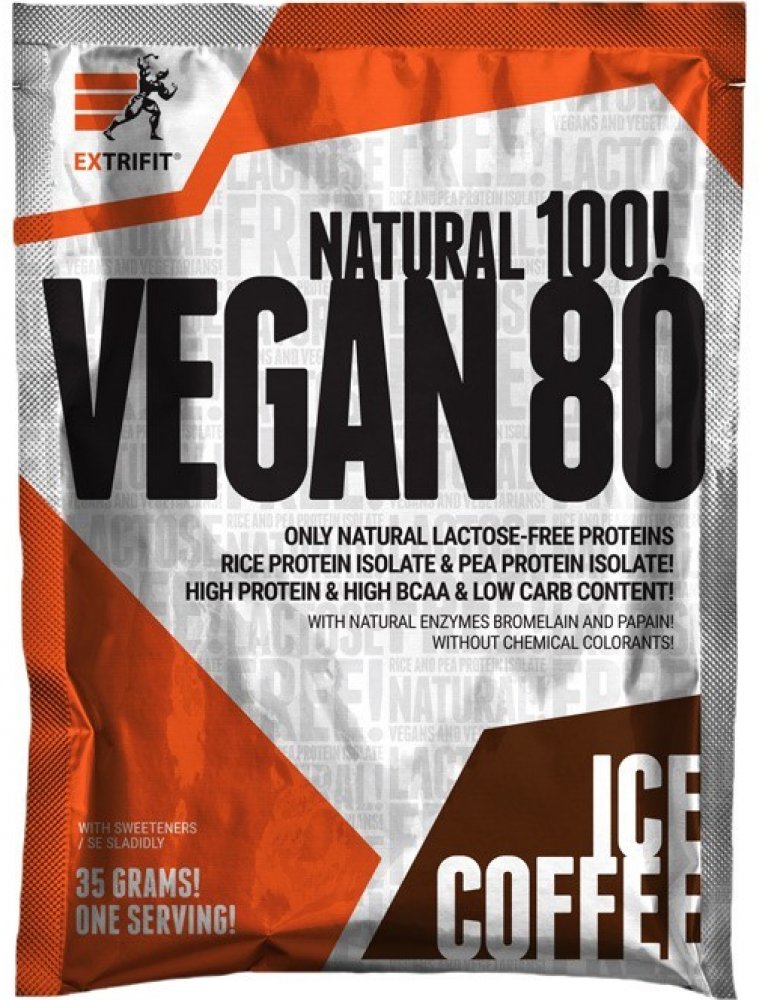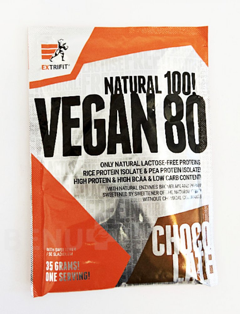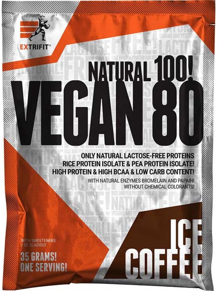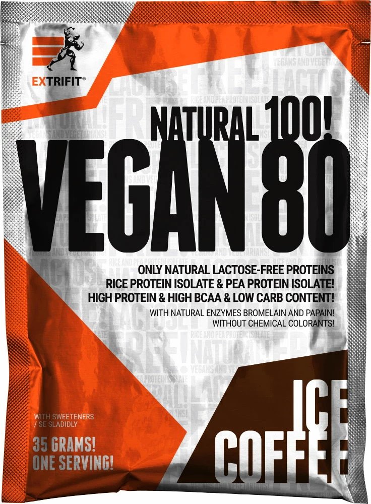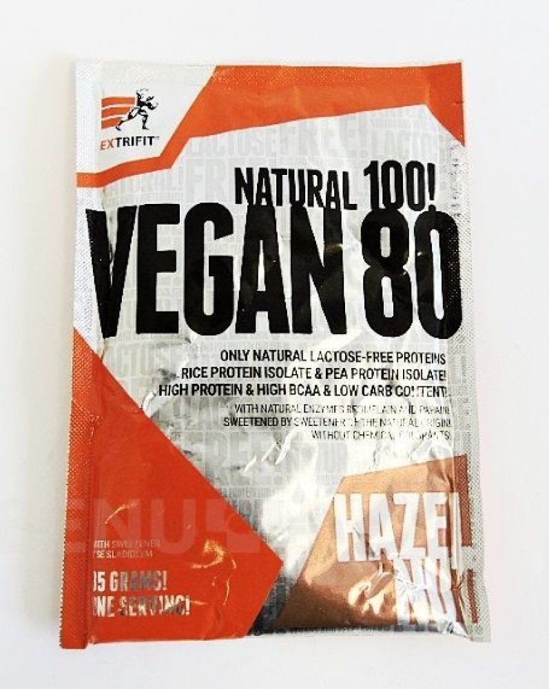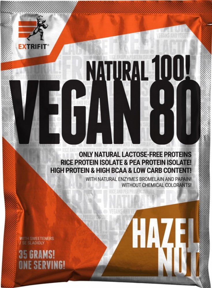 Proteinový izolát z výhradně rostlinných zdrojů! Neobsahuje laktózu! Vynikající alternativa k syrovátkovým a mléčným proteinům. Tento špičkový rostlinný izolát má dokonalé parametry. Na rozdíl od jiných rostlinných proteinů, se kterými jste se setkali, má Extrifit Vegan 80 obsah bílkovin až 75 % a obsah BCAA až téměř 5000 mg v jediné odměrce.