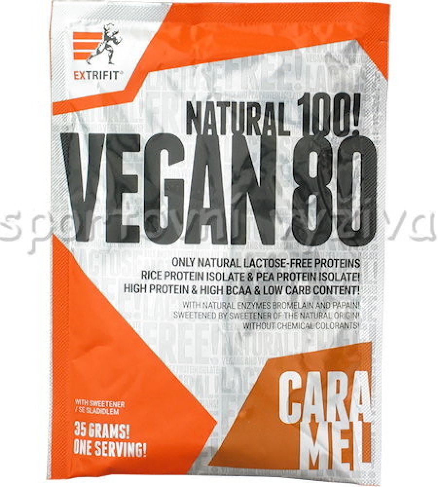 Extrifit 35 g veganské práškové 26.25 g 35.0 g 1 ks bromelain, papain, sucralose pea protein, rice protein, enzymes 14.0 g/100 ml