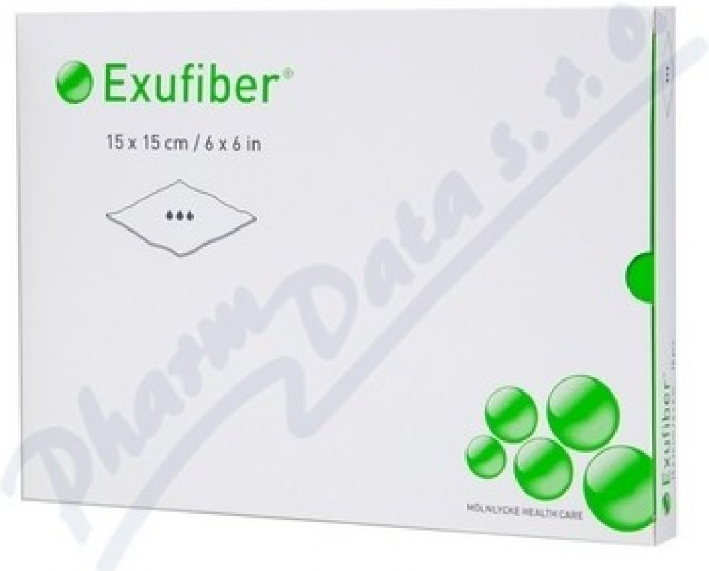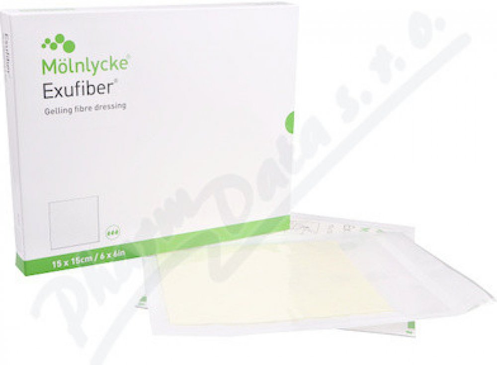 Exufiber 15x15cm 10ks Vysoce savé krytí z hydrovlákna i pod kompresí. Exufiber® je sterilní netkané krytí vyrobené z vysoce savých vláken polyvinylalkoholu. Při styku s exsudátem z rány se Exufiber® mění v gel, který přispívá k vytváření vlhkého prostředí v ráně a snadnému odstranění při převazech.