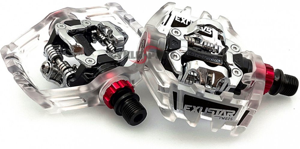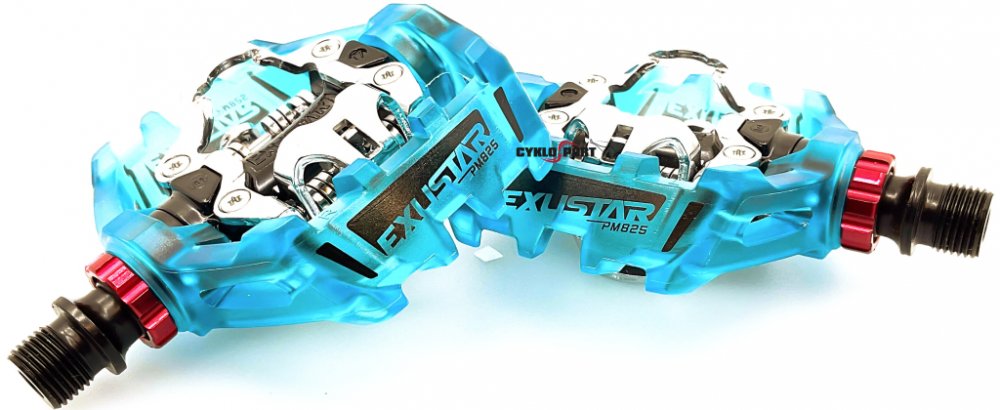 MTB pedály Exustar E-PM825 s kyvnou platformou pro snadné zachycení zámku boty Vám při jízdě terénem poskytnou ještě větší jistotu a komfort. Tělo pedálu je z litého hliníku, zapouzdřené CrMo osy a dvojitého ložiskového systému. Kufry jsou oboustranné typu EPS-M (kompatibilní s Shimano MTB). Platforma je z odolného termoplastu.