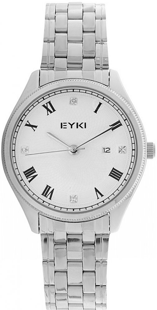 Eyki analogové ocel klasické pánské bateriové - quartz zirkonie kulaté stříbrná překlápěcí spona