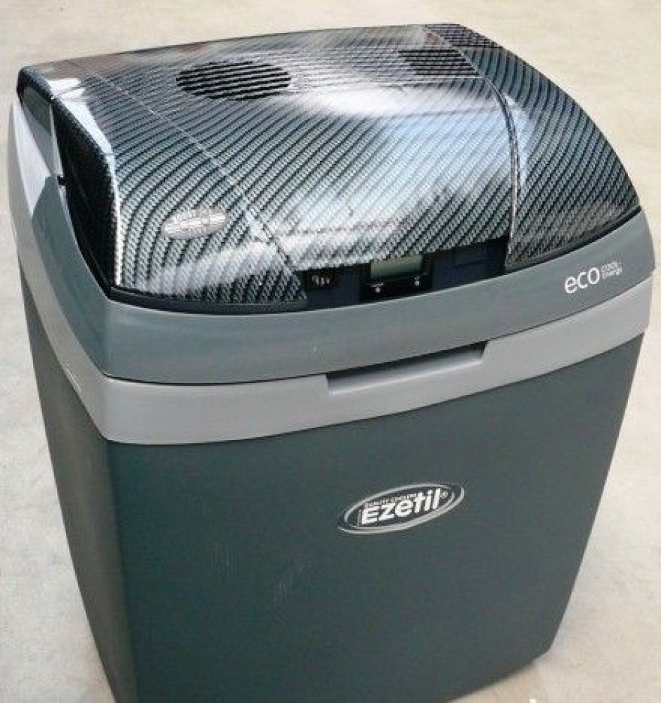 Termoelektrická autochladnička E3000 s víkem v karbonové imitaci. Objemem 23Litrů a nadstandarní tloušťkou izolace pro zvýšený chladící účinek nebo pro delší uchování vnitřní teploty bez nutnosti napájení. Napájecí napětí 12V DC, 24V DC nebo 230V AC, vnitřní a vnější ventilátor s testovanou 5letou životností motoru. Lednice má displej pro orientační zobrazení vnitřní teploty a podpěťovou ochranu autobaterie. Do lednice se vejde pohodlně 3-4 2litrové lahve nastojato + zbyde dost prostoru pro další potraviny (viz vnitřní rozměry níže).