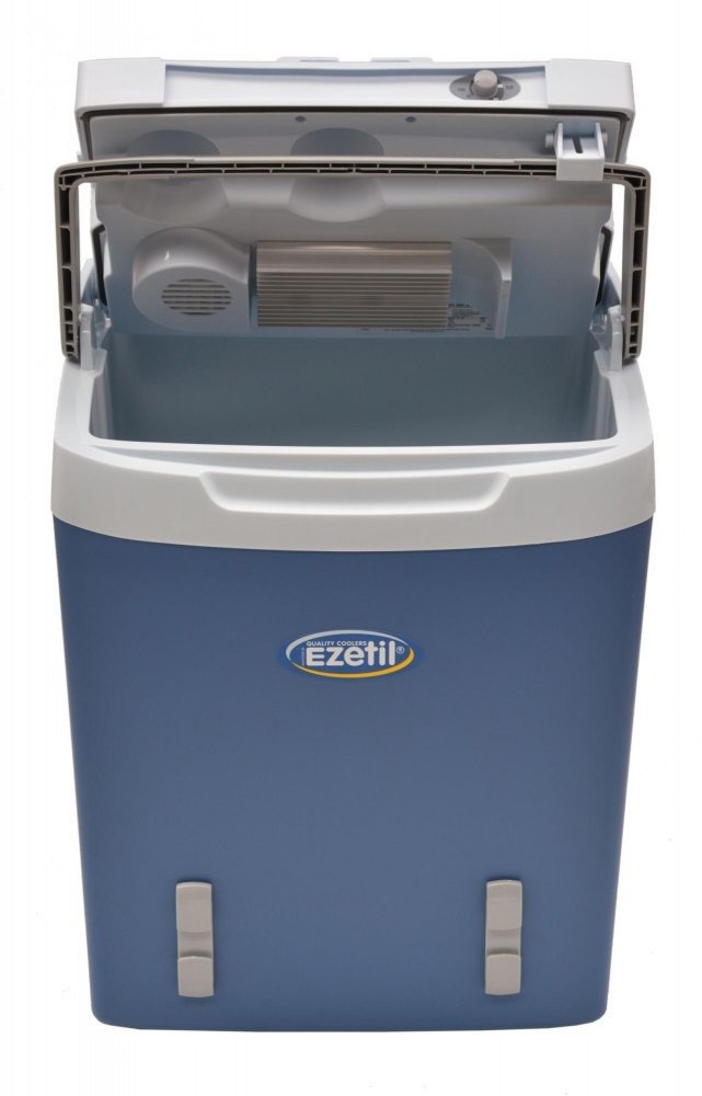 A++ termoelektrická autochladnička E32 12/230V 30 litrů EZetil s možností nastavení chlazení. Ukládací prostor pro kabely, které jsou součástí víka, nemůžete je tak ztratit. Chladící účinek až 17°C. Úchyty pro připoutání pásem.