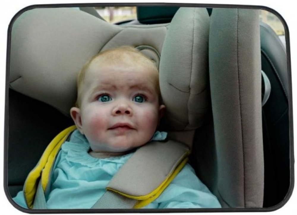 Vlastnosti: - pro kontrolu děťátka sedícího v autosedačce proti směru jízdy - uchycení pomocí popruhů se sponou na opěrku autosedadla - mírně zaoblené pro panoramatický výhled na děťátko - pasuje do většiny automobilů - materiál ABS + akryl - vyrobeno z 1 recyklované Pet lahve