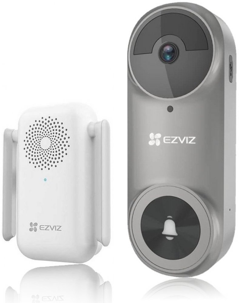 Chytrý domovní zvonek s integrovanou kamerou, mikrofonem a bezdrátovým připojením Wi-Fi nabízí možnost obousměrné komunikace skrze aplikaci EZVIZ. Díky PIR senzoru pohybu dokáže detekovat pohyb přede dveřmi a upozornit na něj notifikací v chytrém telefonu. Kamera disponuje rozlišením 2000 x 1504 obrazových bodů, úhlem záběru 176° a IR přísvitem do vzdálenosti až 5 metrů. Potěší také podpora micro SD karet do velikosti až 256 GB, na kterou lze ukládat záznamy z kamery. Ty je pak možné zpětně přehrávat v mobilní aplikaci. V případě pokusu o násilné odstranění zvonku se automaticky spustí alarm a je odesláno upozornění do mobilní aplikace. Samozřejmostí je odolnost proti prachu a vodě dle IP65. O napájení se stará vestavěná dobíjecí baterie s kapacitou 5200 mAh a výdrží až 115 dní. Případně lze využít také kabely ze stávajícího dveřního zvonku s pevným zapojením. Nabíjení je pak realizováno skrze micro USB konektor. Součástí balení je také vyzváněcí modul do elektrické zásuvky, ten umožňuje výběr z dvaceti vyzváněcích melodií.