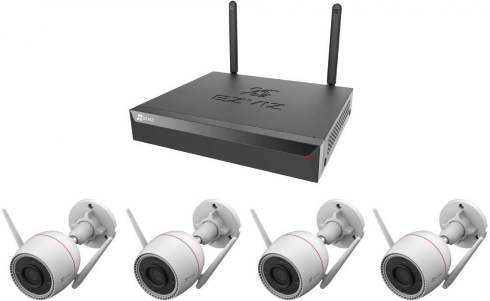 EZVIZ H3c 2K+ KIT; Sada záznamového zařízení a čtyř bezpečnostních kamer. Kamera H3c 2K+; Venkovní bezdrátová IP kamera nabízí snímač 1/2,7" CMOS s rozlišením 4 Mpx , který je schopný snímat video v rozlišení 2560 × 1440 při 30 fps . Pro případ zhorše...