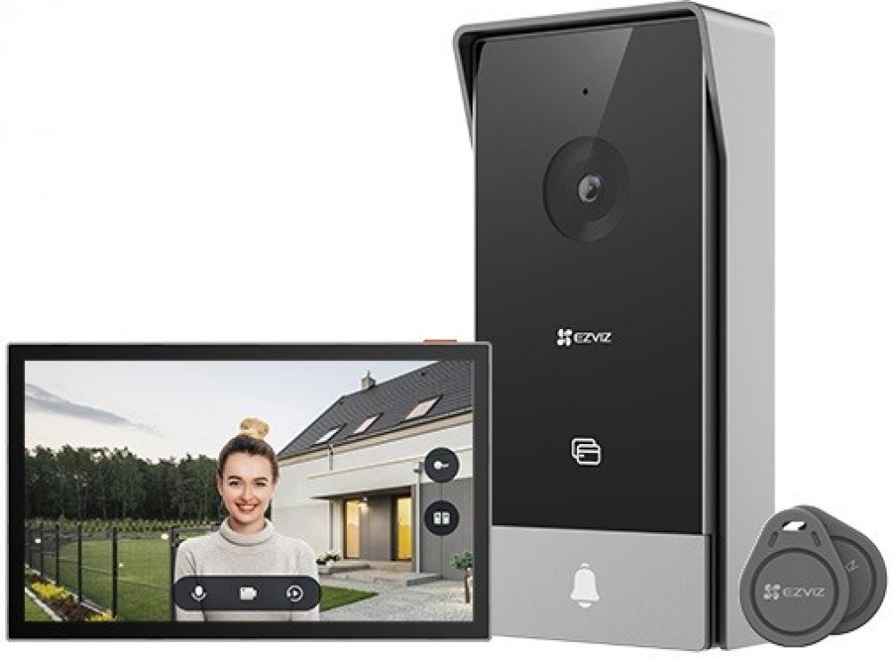 Ezviz HP5chytrý domácí videozvonek3v1: funkce kamery, zvonku a interkomu umožňuje HP5 majitelům domů snadno na dálku vidět, mluvit a umožnit vstup návštěvníkům.Hmotnost: 639gZpůsob připojení: drátové (2-Wired, lze i 4-Wired), digitální přenos signáluPřenosová vzdálenost:* 2x 0,75 mm2, max. 50 m* 2x 1,5 mm2, max. 100 m* kroucený pár, max. 120 mMetody otevírání dveří:1. odemknutí klíčenkou RFID (CPU karta 2 ks)2. vzdálené odemknutí přes aplikaci3. odemknutí přes vnitřní displejVenkovní zvonek* mikrofon s vysokou citlivostí* vysoce výkonný reproduktor* tlačítko zvonku (lze nastavit, aby svítilo nebo ne)* dva kabelové porty pro připojení obrazovky* dva kabelové porty pro připojení brány* dva kabelové porty pro připojení elektrického narážecího plechu* vodotěsný, se štítovým krytem* až 20 vyzváněcích tónů* živé zobrazení, přehrávání, obousměrný hovor, videohovorObrazový snímač: 1/2,7” CMOS snímač s progresivním skenovánímKomprese videa: H.265/H.264Max. rozlišení: 1920×1080 (1080p)Dosah nočního vidění: až 6 mObjektiv: 2,0 mm @ F1,6, pozorovací úhel: 134° (diagonálně)DNR: 2D/3D DNRSnímková frekvence: max. 15 snímků za sekunduRozměry: 153×70,4×22,5mmDotykový displej* mikrofon s vysokou citlivostí* vysoce výkonný reproduktor* tlačítko zapnutí/vypnutí obrazovky* dva kabelové porty pro připojení venkovního zvonku* podpora microSD karty až do 512GB* podpora úložiště EZVIZ CloudDisplej: 7” (1024×600)Standard Wi-Fi: IEEE802.11b, 802.11g, 802.11n, 802.11acFrekvenční rozsah: 2,4G: 2,4GHz-2,4835GHz 5G: 5,15GHz-5,25GHzŠířka pásma kanálu: podpora 20MHzZabezpečení: 64/128-bit WEP, WPA/WPA2, WPA-PSK/WPA2-PSKPřenosová rychlost: 11b: 11Mb/s, 11g: 54Mb/s, 11n: 1560b/s, 11ac: 433,3Mb/sProtokol rozhraní: proprietární protokol EZVIZ CloudZdroj napájení: DC 24V 1,5A napájecí zdroj, adaptér (100-240Vac)Spotřeba energie: 8W, max. 24WRozměry: 180×111×15mmObsah balení:* displej* nástěnný držák pro displej* napájecí adaptér pro displej* panel interkomu* vrtací šablona pro displej* vrtací šablona pro panel interkomu* 2× jmenovka* šroubovák* 2× RFID klíčenka/přívěsek* 2× sada šroubů* dráty a drátové konektory* konektorový kabel DC 24V napájecího zdroje* 2× regulační informace* rychlý návodOdkaz na stránku výrobce: https://www.ezviz.com/product/hp5/56867