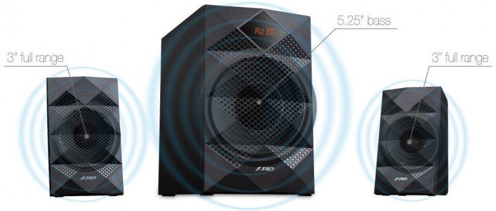 Výkonný audio systém v konfiguraci 2.1 disponuje celkovým výkonem 42 W. Přehrávat hudbu je možné jak drátově skrze 3,5 mm jack, tak i bezdrátově pomocí technologie Bluetooth. Využít lze také port USB s vlastním samostatným ovládáním a přehrávat tak hudbu přímo z flashdisku. Reproduktory jsou vybaveny i rádiovým FM přijímačem s pamětí až na 100 stanic.