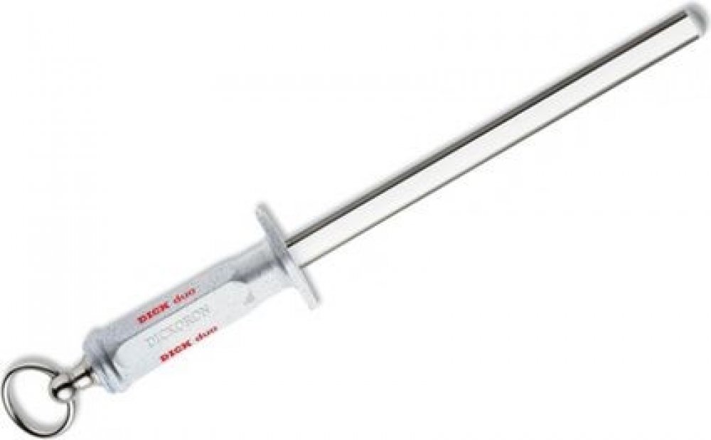 Ocílka DICKORON DUO je kombinovaná ocílka ze dvou materiálů - diamantový povrch určený k preciznímu naostření a keramika určena k doleštění ostří.Ocílka Dickoron Duo je dokonalou kombinací obou materiálů:Do keramické ocílky plochého tvaru jsou zasazeny dva leštící pruty s diamantovým povrchem.Miliony dimantových částic velmi precizně a přitom šetrně naostří váš nůž. Keramický povrch se zrnitostí 1000 (ekvivalent 3000 japonské normy) nůž velmi jemně doleští.Oba povrchy - diamantový a keramický - mají extrémně vysokou tvrdost a jsou proto vhodné zejména pro všechny nože z tvrdé oceli.