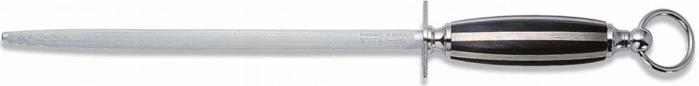 Ocílka pro kuchaře je z Exkluzivnísérie 1905 a má standardní tah. Nástroje vysoké kvality vyžadují údržbu a musí být pravidelně ostřeny. Po nějakém čase i ten nejlepší nůž ztrácí ostrost vlivem neustálého kontaktu s potravinami a prkénkem. V každé kuchyni by proto měl být kvalitní ostřící nástroj, neboť vaření je příjemné pouze, když se používají ostré nože.Exkluzivní designová série. Spojuje tradiční zpracování v moderním duchu s prvky historického designu. V roce 1905 Friedr. Dick vyvinul sérii kuchařskyých nožů s masivními spoji, které nahradily doposud používané nýty. Od roku 1905 se tento jedinečný design dále vyvíjel s použitím moderních materiálů a výrobních technik. Čepel je vyrobena ze speciální německé ušlechtilé oceli XcrMoVMn. Náročnou technologií tvrzení byl vyroben jedinečný, jemně disperzníohebný materiál s dynamicky ostrou čepelí. Ocílka Dick standardní tahová řada 1905 25 cm, kulatáKuchařské nože Dick řady 1905 tehdy stejně jako dnes zaujaly svým neobvyklým vzhledem. Dnes se používají moderní materiály a výrobní postupy. Jednotné ocelové kroužky jsou unikátní technikou neoddělitelně spojeny s plastem. Čepel je jemně ostrá, nůž je dokonale vyvážený a směrem ke špičce se zužuje.Čepel je samozřejmě vyrobena z jedné z nejkvalitnějších německých ocelí; finální broušení se jako vždy provádí ručně, kus po kusu. Hlavice končí uprostřed čepele nože, aby se nůž obzvlášť snadno používal a brousil. Postupující ruka je však bezpečně chráněna před poraněním způsobeným ostřím. kuchařská ocílka kulatá, délka 25 cm,