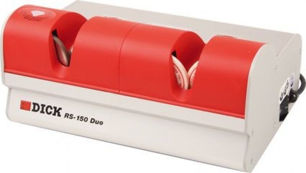 Bruska Dick RS-150 DUO je určena pro broušení a obtahování ručních nožů s hladkým ostřím. Svou velikostí a výkonem je ideální například pro restaurace a obchody.Technická specifikace:Rozměry stroje (d x š × v): 339 mm × 232 mm × 161 mmHmotnost: 4,9 kgOtáčky motoru: n = 1300 1/min.Brusný diamantový kotouč č. 9 8210 3482Obtahovací keramický kotouč č. 9 8209 0251Otáčky kotoučů: n = 1250 1/min.