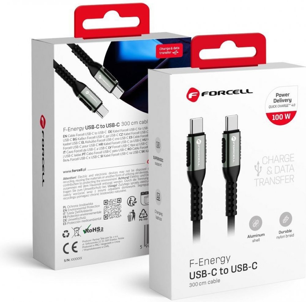 F-ENERGY C260 Typ C až Typ C QC4.0 PD 5A 100W, 3m, černý
