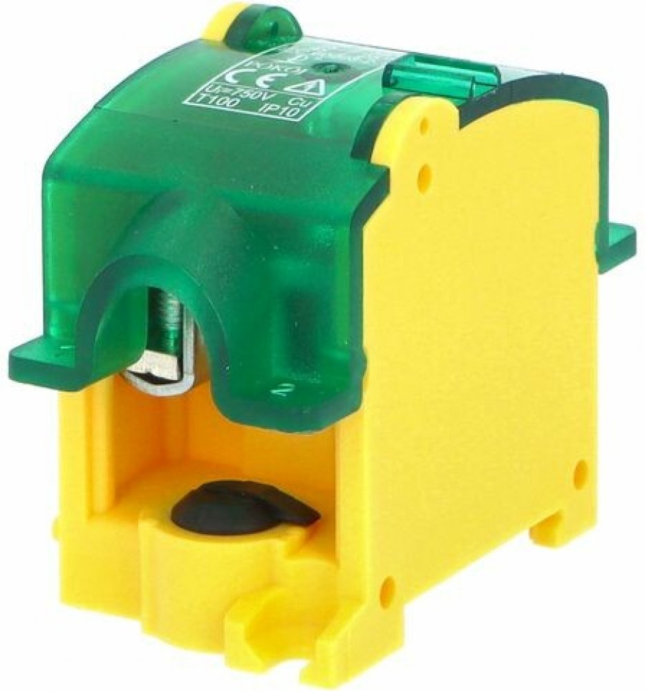 Svorkovnice stoupací OBL 35/25-1, krytá, montáž na DIN / panel, 1pólová, vstup 1x35mm2, výstup 4x25mm2, jmenovitý proud 125A, jmenovité napětí 750V, rozměry: 61x38x73mm, krytí IP10, barva zeleno-žlutá. Svorky OBL s krytem pro stoupací vedení (krytí IP10) pro použití např. v bytových domech. Hlavní stoupací kabel (vodič) není nutné přerušit, svorky jsou konstruovány pro průběžné napojení odboček. Jsou určeny k instalaci na nosnou lištu (s možností dodatečného upevnění šroubem), mosazná svorka je vhodná pro měděné vodiče, nabízené varianty umožňují odbočení vždy z jednoho pólu čtyřmi vodiči. Hlavní přednosti: • rychlá montáž bez nutnosti krátit hlavní kabel • svorky jsou určeny pro montáž na nosnou lištu • jmenovité napětí 750 V AC • plombovatelné