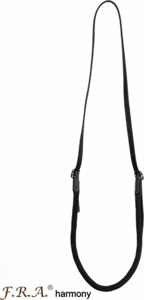 Nákrčník Harmony od firmy F.R.A.. Nákrčník je vyroben z imitace kůže a je opatřen kovovými přezkami na obou stranách. Díky postrannímu stahování lze velikost nákrčníku přizpůsobit koni. Nákrčník je v oblasti hrdla koně vybaven měkkým kulovitým provazem. Lze ho využít při jízdě na koni či při práci ze země. Nákrčníky mohou napomoci ke zlepšení vztahu a komunikace mezi jezdcem a koněm. V rámci bezu...
