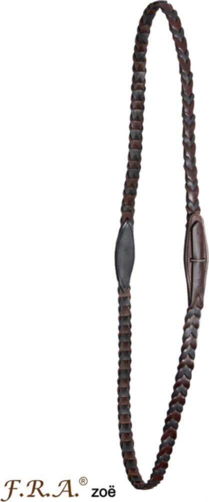 Nákrčník Zoë od firmy F.R.A. Nákrčník je vyroben z pletené hnědé a černé kůže. Jedná se o pružný nákrčník bez kovového jádra. Lze ho využít při jízdě na koni či při práci ze země. Nákrčníky mohou napomoci ke zlepšení vztahu a komunikace mezi jezdcem a koněm. Dostupné ve velikosti pony, cob a full. V rámci bezudidlového diagramu F.R.A. spadá pod číslo 1.