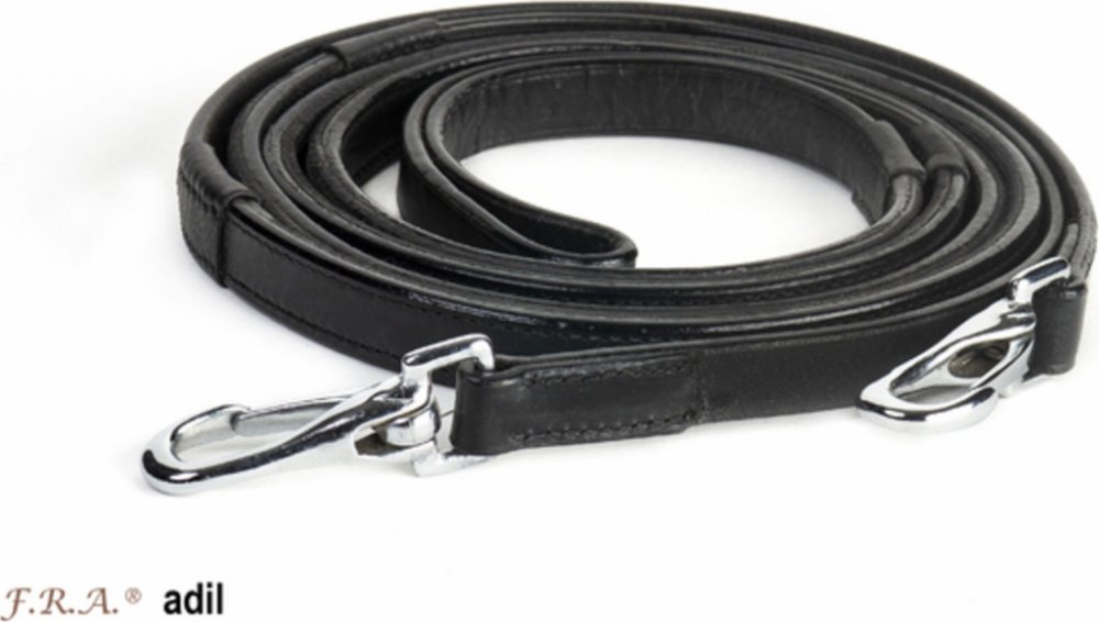 Kvalitní kožené otěže Adil disponují karabinami na obou koncích, které zajišťují rychlou a jednoduchou manipulaci. Vybaveny stříbrným kováním. Dostupné také v hnědém provedení. V oblasti rukou je otěž vybavena gumovou částí, aby se eliminovalo riziko vyklouznutí. Otěže je možné rozdělit pomocí přezky uprostřed. Jedná se o ilustrační fotografii, otěže jsou dodávány s pogumovaným povrchem a přezkou ...
