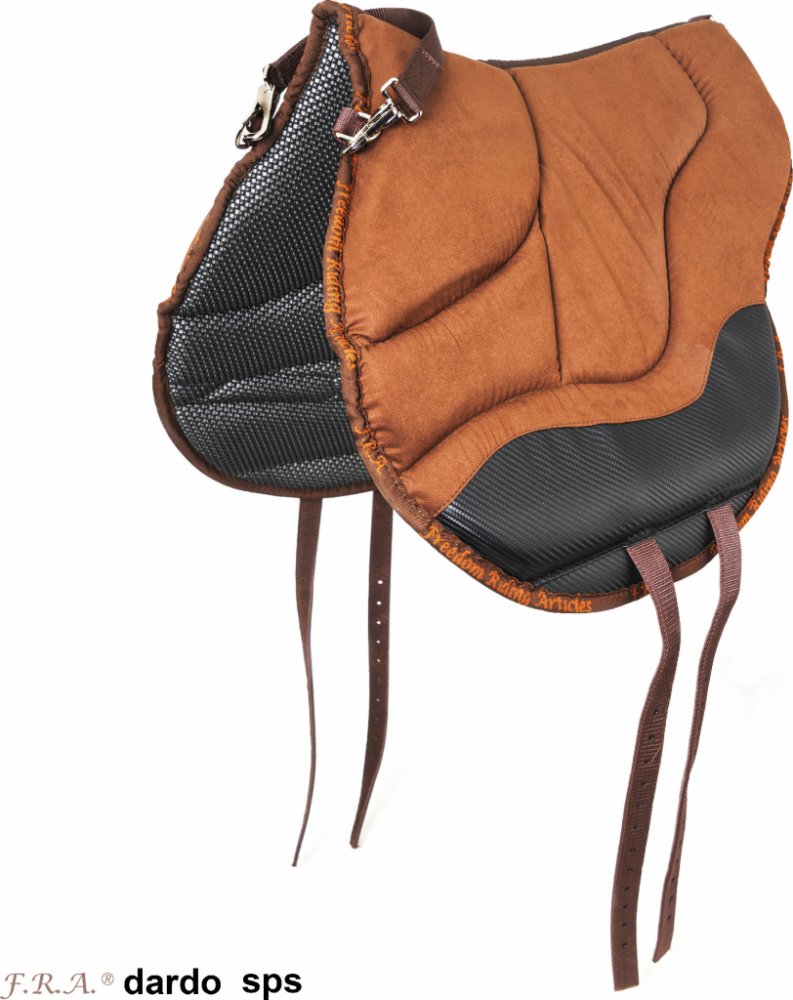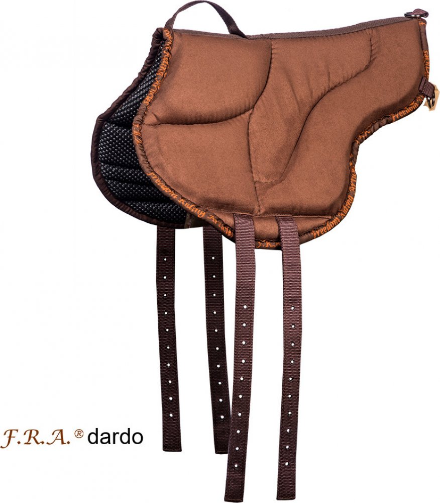 Jezdecký pad Dardo F.R.A zajišťující výborný kontakt mezi jezdcem a koněm. Jízda bez sedla je pro koně i jezdce často vítanou změnou každodenního tréninku. Jeho anatomický tvar se snadno přizpůsobí každému koňskému hřbetu, podporuje správný sed a poskytuje oporu. Vrchní strana je potažena semišovým materiálem, tudíž je pad pro jezdce protiskluzový. Vypodložený je vrstvou ze Sympa materiálu, kter...