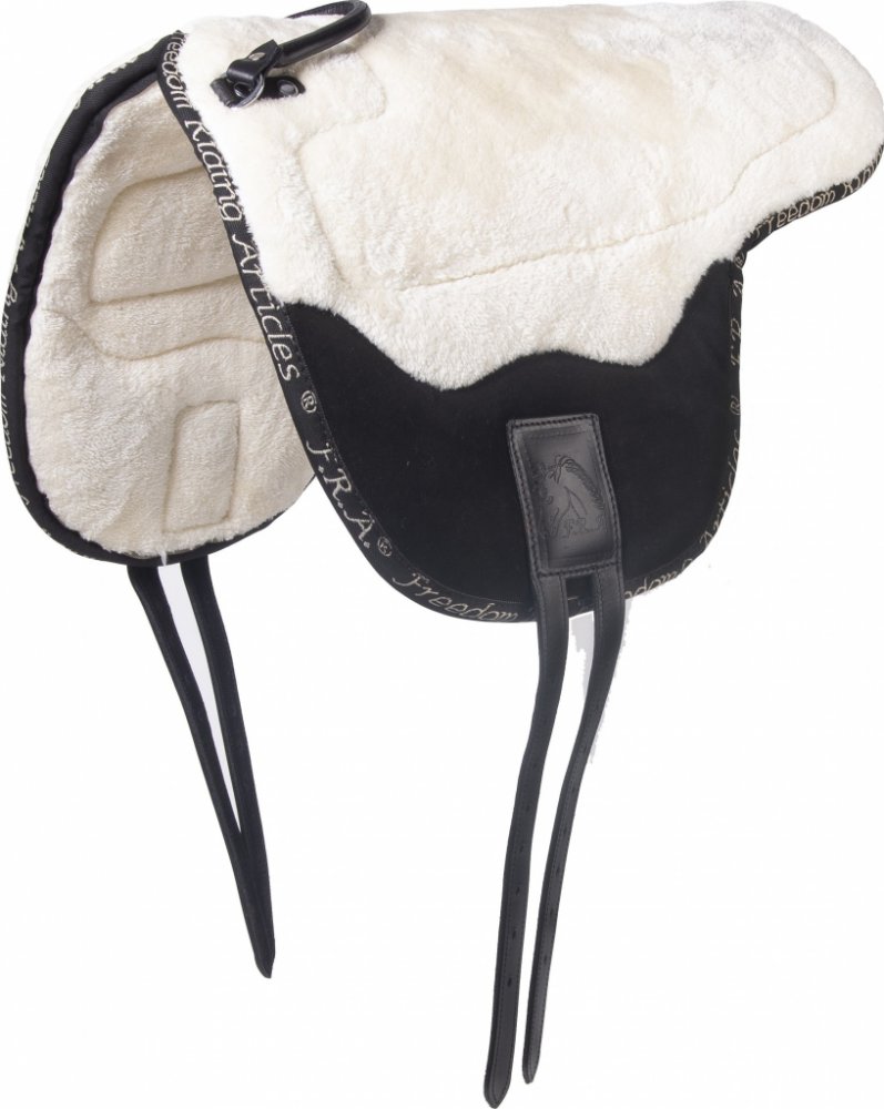 Jezdecký pad Free F.R.A je základní jezdecký pad zajišťující výborný kontakt mezi jezdcem a koněm. Jízda bez sedla je pro koně i jezdce často vítanou změnou každodenního tréninku. Jeho anatomický tvar se snadno přizpůsobí každému koňskému hřbetu. Spodní strana a plocha k sezení je ze syntetické tkané vlny. Vnitřek vyroben z plstě. Vybaven koženými popruhy na připnutí podbřišníku a odnímatelným koženým poutkem. Dodáván bez podbřišníku. K dispozici ve velikostech Shetty/Pony, Cob a Full.