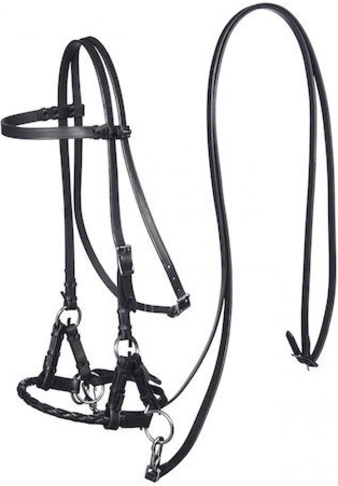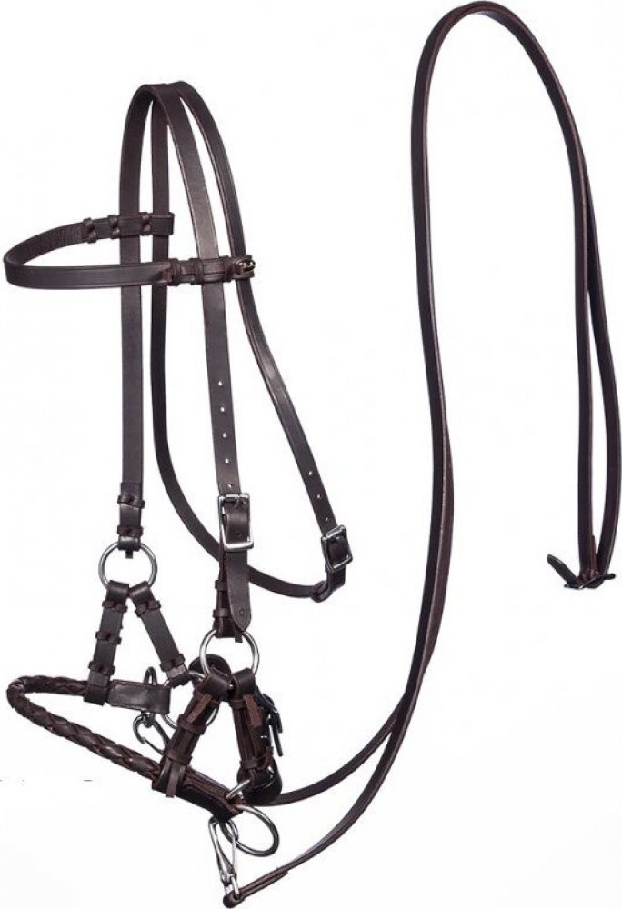 Elegantní kožená bezudidlová uzdečka Sidepull s pleteným kulovitým nánosníkem a plochým nátylníkem. Nánosník působí díky své kulovitosti ostřeji a přesněji, než klasické nánosníky. Vyrobeno z kvalitní kůže. Veškerá kování na uzdečce jsou ve stříbrné barvě. Společně s uzdečkou jsou dodávány také otěže s karabinkami. V rámci bezudidlového diagramu F.R.A. spadá pod číslo 3.