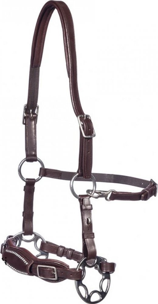 Kvalitní komplet bezudidlové kožené uzdečky a hackamore od značky F.R.A. Tato uzdečka má anatomický tvar a je speciálně sestavena, tak aby se nepřetáčela a zůstala na správném místě. Uzdečka je vybavena měkkým polstrováním. Disponuje širokým nánosníkem, který je zdoben stříbrnými cvočky. Nemá typický podhrdelník, ale disponuje tzv. balančním řemenem, který je umístěn níže než klasické podhrdelníky...