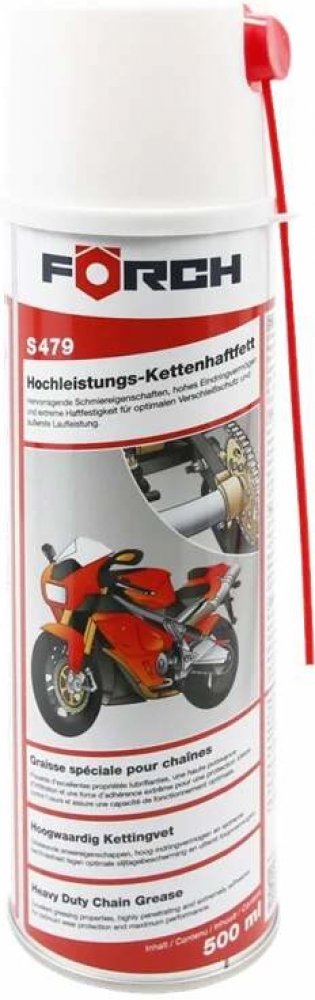 Förch S479 je extrémně přilnavý řetězový mazací tuk na bázi nitridu bóru. Speciálně určené pro dlouhodobou ochranu a údržbu řetězů v náročných podmínkách. Je vhodný pro všechny typy řetězů.