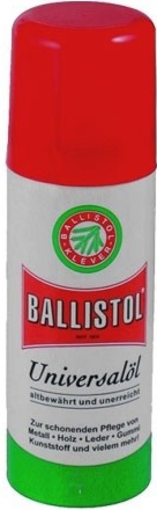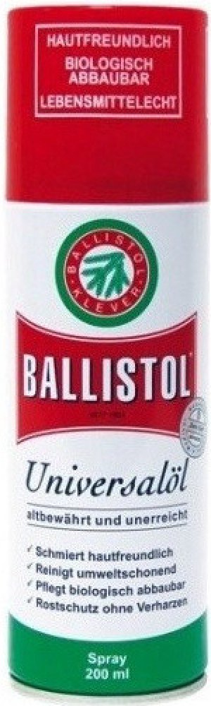 Univerzální olej BALLISTOL - 200 ml. Jedná se o jeden z nejlepších všeobecně použitelných olejů s vynikajícími ochrannými a konzervačními účinky.Ballistol čistí, ošetřuje a konzervuje !Ballistol obsahuje čisté přírodní produkty nebo látky, které nazatěžují životní prostředí.Nejsou použity žádné FCKW, PCB, dioxiny a chlorované uhlovodíky.