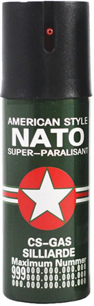 Tento pepřový sprej je vynikající prostředek pro sebeobranu. Pepřový sprej NATO vystříkne tenký paprsek pepřové tekutiny na vzdálenost 3-5 metrů. Jeho použití znamená technické KO i pro ty nejagresivnější útočníky.