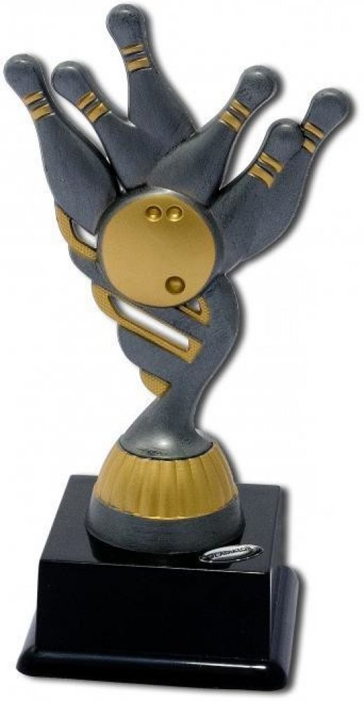 Šedá soška s motivem bowlingu na podstavci černé barvy. Výška sošky včetně podstavce je 16 cm. Na podstavec lze umístit štítek, který lze potisknout textem dle Vašich požadavků. Na štítek této velikosti se ideálně vejdou 3 řádky, na každém řádku cca 20 znaků.