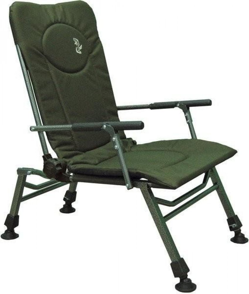 Kvalitní rybářské křeslo s područkami, s polohovací opěrkou zad a stavitelnou výškou posedu (nohou dle terénu).