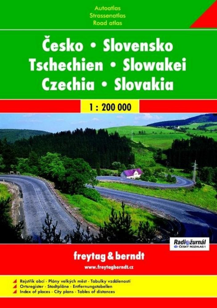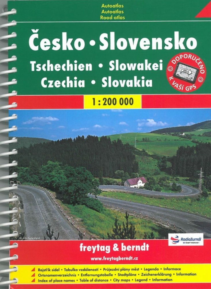 Autoatlas České a Slovenské republiky formátu A5 ve spirálové vazbě. Atlas obsahuje rejstřík obcí s PSČ, průjezdní plány měst, seznam přechodů, popis a fotografie významných památek, vzdálenostní mapu a tabulku. V mapě jsou vyznačeny čísla silnic, kilometráž, placené úseky silnic, silnice ve výstavbě, čerpací stanice, motely, hotely, kempy, památky, ZOO, lázně atp., chráněné oblasti, střediska zim...