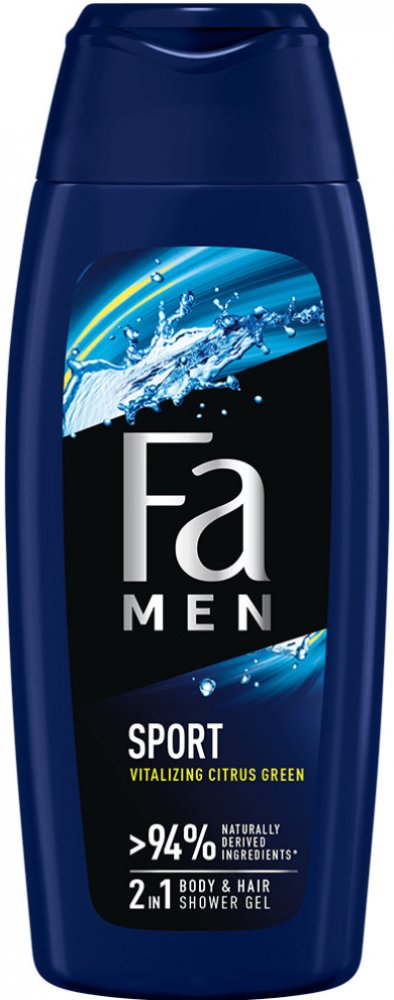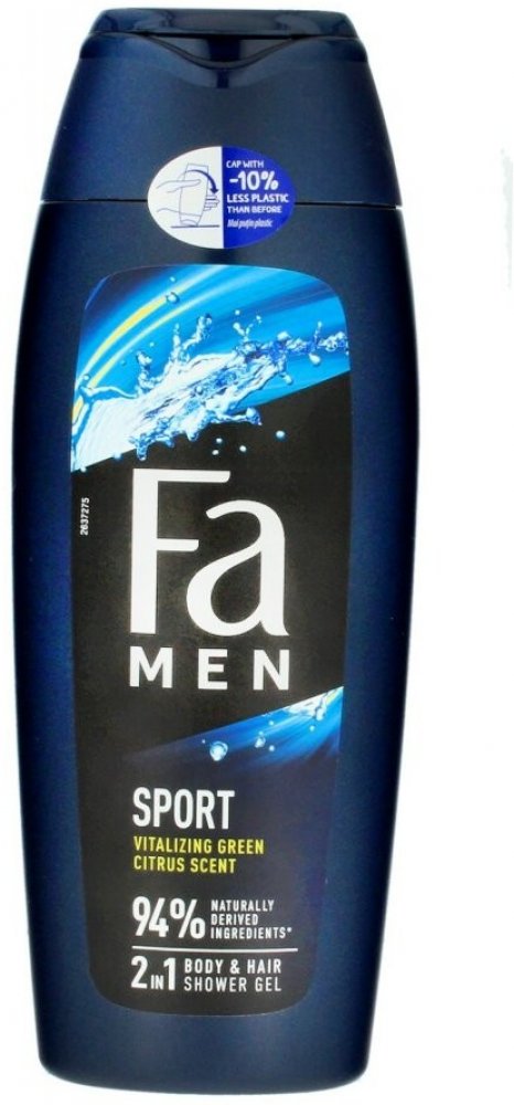 Fa Μen sprchový gel 2v1 Sport, 400 ml nabízí praktické a osvěžující mytí pro muže, spojuje tělo i vlasy v jednom přípravku s vůní zelených citrusů. Velikost 400 ml a energetická vůně dělají z tohoto sprchového gelu ideální volbu pro každodenní použití i pro aktivní životní styl. LEPŠÍ PRO VÁS I PLANETU – jednoduché, účinné a osvěžující řešení v kategorii pánské sprchové gely.