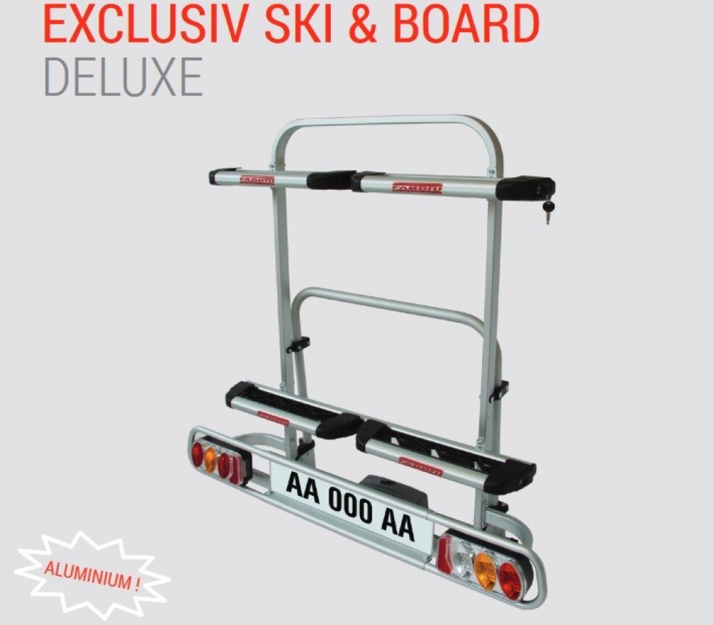Nosič lyží na tažné zařízení Fabbri Exclusive Ski & Board Deluxe nabízí univerzální nástroj pro bezpečný a pohodlný převoz lyží na tažném zařízení. Navíc je možné tento nosič lyží pomocí volitelného příslušenství snadno transformovat na nosič až tří kol!
