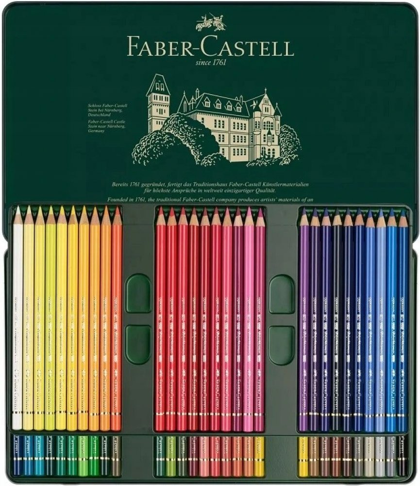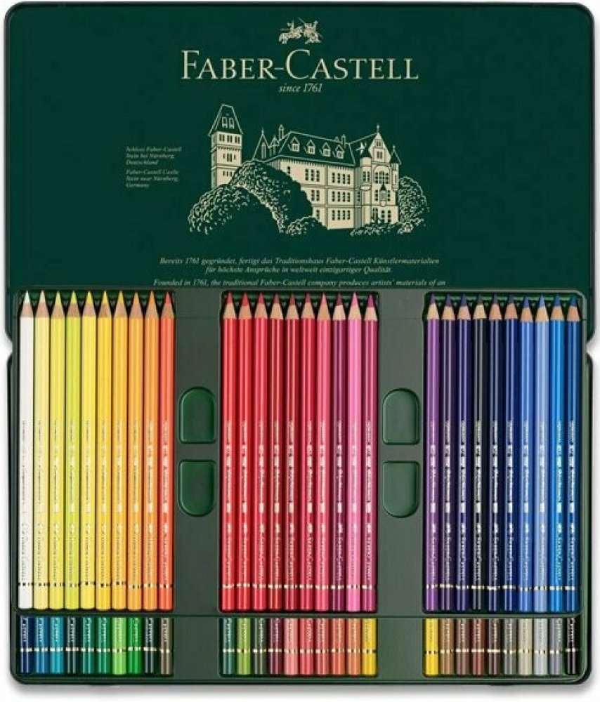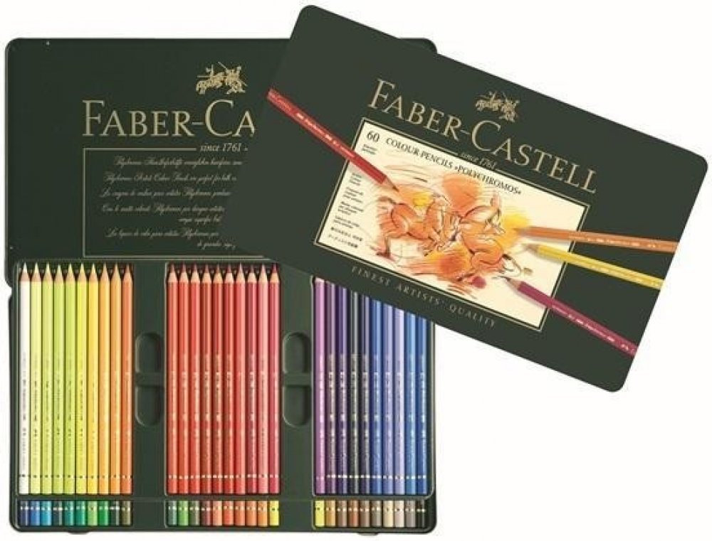 Faber-Castell Polychromos - 60 špičkových uměleckých pastelek v kovové kazetě Umělecké pastelky nejvyšší kvality 60 barevných odstínů v pevné kovové kazetě. Mají hladkou, středně měkkou tuhu o síle 3,8 mm s malou příměsí vosku. To zajišťuje sytou, ale nikoli mastnou stopu. Vysokojakostní pigment vyniká velmi vysokou odolností vůči vodě a světlostálostí. Pastelky jsou vyrobeny z cedrového dřeva. Tu...