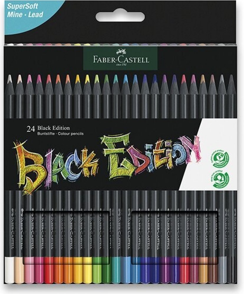 Pastelky Black Edition mají úžasně měkké a živé barvy díky novému složení tuhy SuperSoft. Vysoce kvalitní pigmenty a jejich vysoký obsah v barevné tužce umožňují různé kreslířské techniky na světlý, barevný i tmavý papír. Ergonomický trojhranný tvar automaticky zajišťuje správnou polohu úchopu a optimální pohodlí při kreslení.