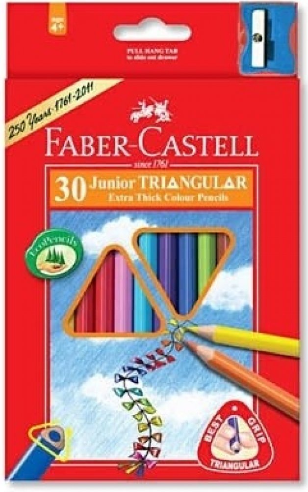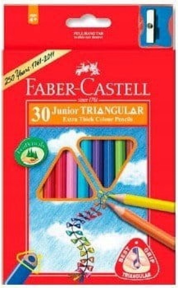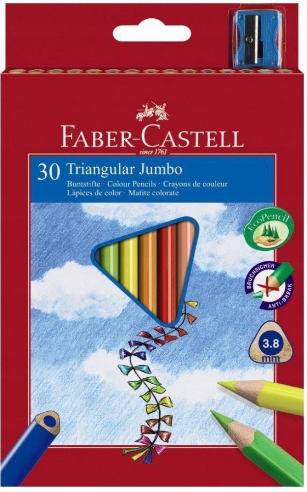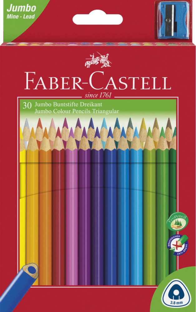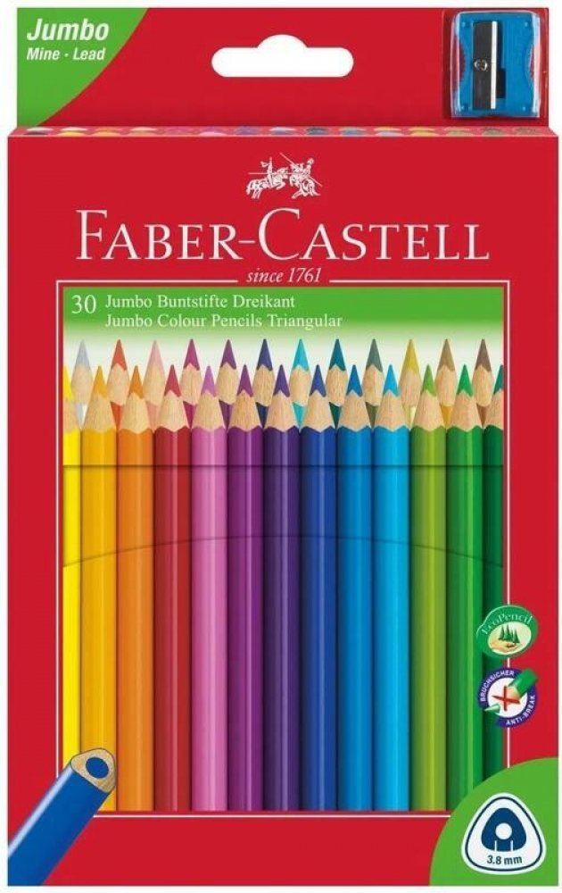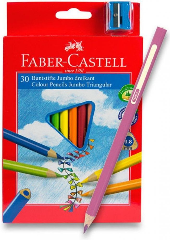 Sada 30 kvalitních dřevěných pastelek včetně ořezávátka. Trojhranné tělo, středně silná měkká tuha o šíři 3,8 mm. Středně silné trojhranné pastelky jsou ideální pro malé děti. Umožňují osvojení správného úchop třemi prsty, který přináší dětem více pohodlí a kontrolu při kreslení a malování. Barevná tuha obsahuje vysoce kvalitní pigmenty, které propůjčují obrázkům syté a jasné barvy. Speciální SV...