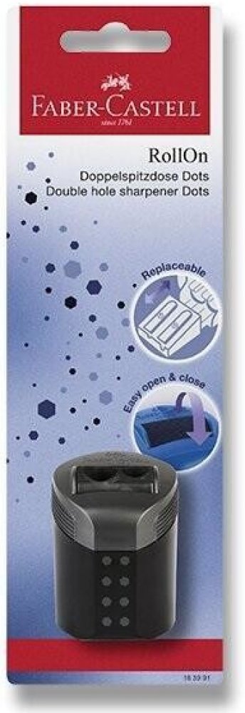 Dvojité ořezávátko RollOn DOTS - blistr- Kvalitní ořezávátko z plastu s vysoce kvalitním ostřím- patentovaný rolovací uzávěr Easy Open & Close- zaručuje snadné a pohodlné otevírání a zavírání ořezávátka- s nádobou na hobliny pro odpad z brousku- extra dlouhé a stabilní vedení tužky pro optimální výsledky ořezávání- trvale udržitelné řešení doplňování náplně díky vyměnitelné ořezávátkové jednotce- ...