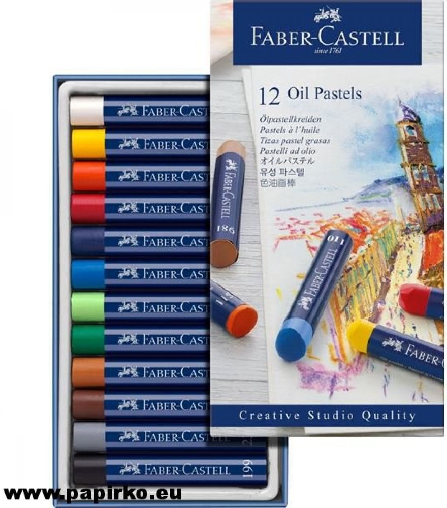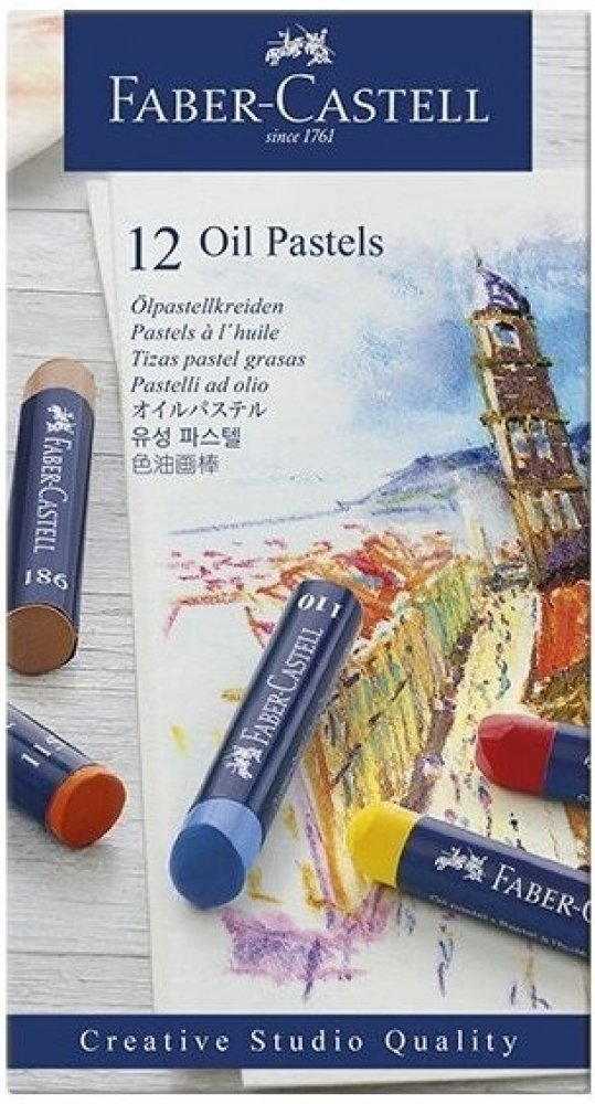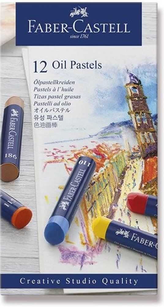 Olejové pastely nejvyšší kvality 12 ks Pastely na olejové bázi vynikají výraznými a intenzivními pastelovými tóny. Pro své vlastnosti a zářivým barvám jsou zvláště vhodné pro enkaustiku. Jsou roztíratelné prsty nebo ředitelné terpentýnem. Barvy lze vzájemně míchat a vytvářet vlastní odstíny. Balení obsahuje 12 barev v papírové krabičce.