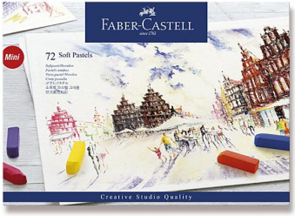 Měkké pastelové křídy Faber-Castell v zářivých barvách, 72 barev. Měkké pastely nemají jen tak pro nic za nic obdélníkový tvar. Hrany a ploché povrchy nabízejí mnoho různých způsobů použití pastelů. Špičkou a hranami můžete kreslit jemné až střední čáry. Chcete-li nakreslit tlusté čáry nebo vybarvit větší plochu, použijte širokou stranu pastelu. Dalším způsobem, jak změnit způsob použití pastelu, je změna intenzity tlaku. Zajímavým způsobem kreslení pastely je šrafování. Pokládáním vrstev na sebe docílíte spontánního míchání barev.vysoká pigmentace, zářivé barvyvelká barevná škálahladké nanášení na papírsnadné roztírání a stínování prsty nebo speciálním štětcemkresbu zabezpečte proti mechanickému poškození fixativem ve sprejiideální pro začátečníky