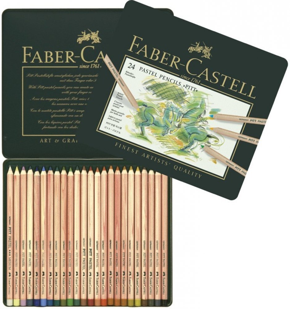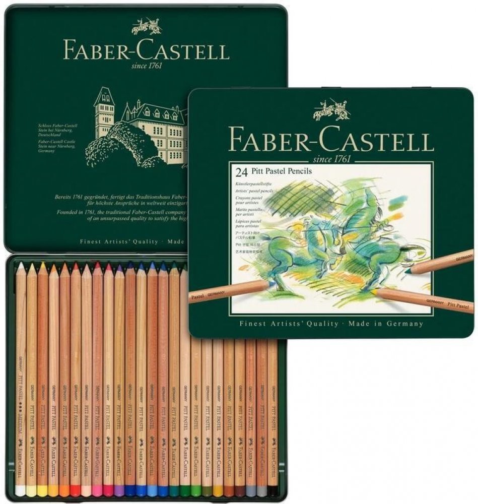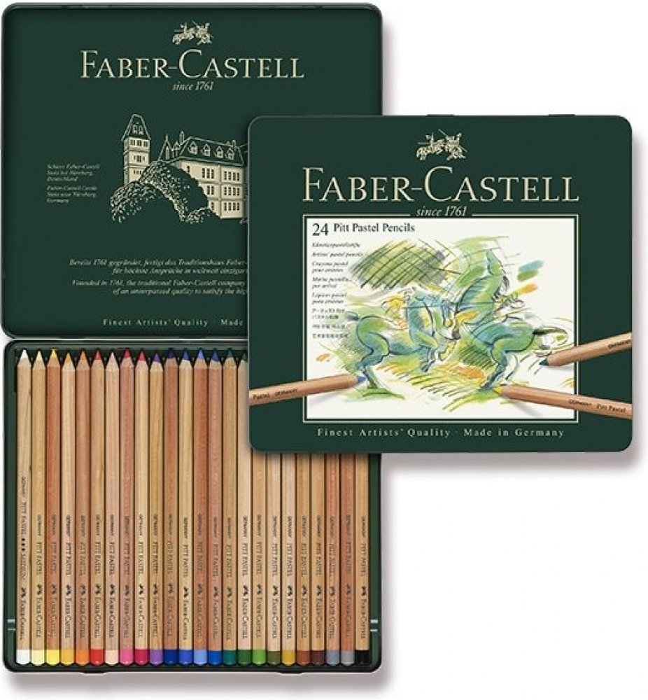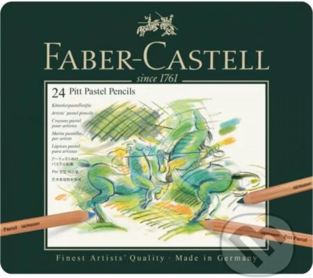 Pastelky Faber-Castell přenesou každého do světa barev a fantazie. Díky kulatému tvaru je práce s nimi maximálně pohodlná. Mohou s nimi kreslit jak praváci, tak leváci. Jsou určeny pro všechny od 12 let. I při vystavení silnému světlu si můžete být jisti, že výsledná malba zůstane odolná proti vyblednutí. V dřevěném těle se nachází tuha, která má průměr 4,3 mm. Kovové balení ukrývá 24 pastelek Fab...