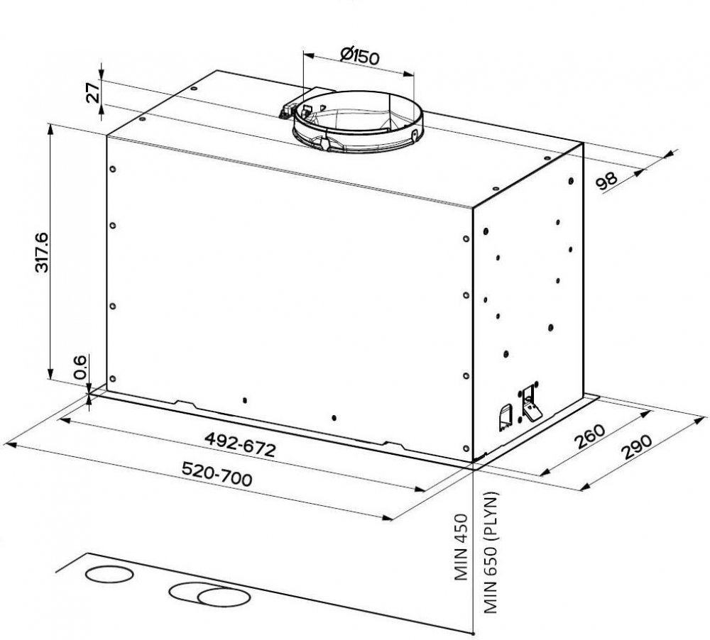 Lze ji také propojit s externím motorem na fasádu MISTRAL. V těchto případech jsou technické parametry digestoře shodné s parametry vybrané externí ventilační jednotky.