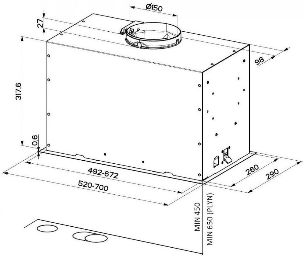 Lze ji také propojit s externím motorem na fasádu MISTRAL. V těchto případech jsou technické parametry digestoře shodné s parametry vybrané externí ventilační jednotky.