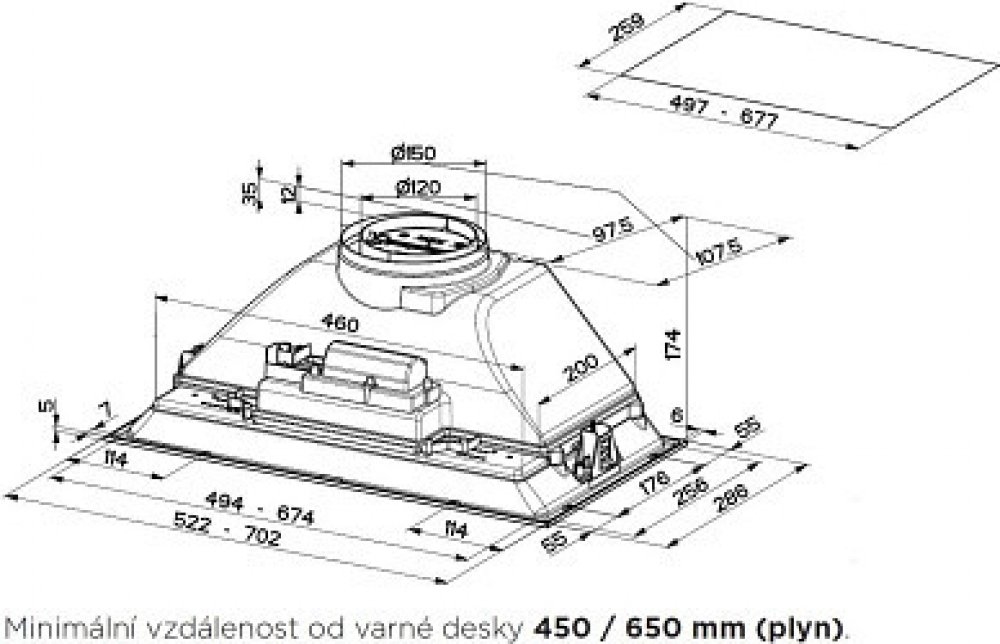 390 m3/hod. 70 dB horní Faber B 110 W vestavné nerezové 70 cm 150 mm 5.2 kg mechanické 3 1 28.6 cm 20.9 cm stříbrné kovové 208217