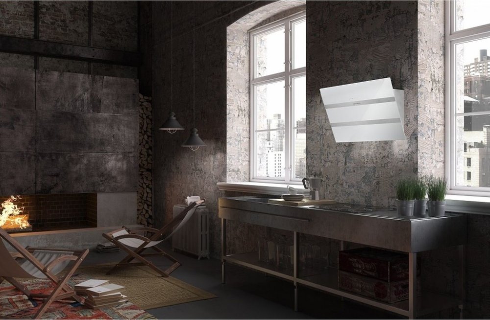 Vertikální panel z bílého skla nepřekáží při vaření a je navíc velice snadný na údržbu. V případě většího množství par můžete napomoci jejich sběru otevřením panelu pomocí pístů.